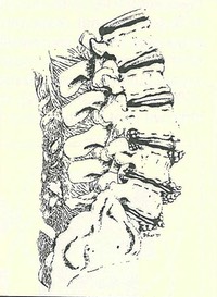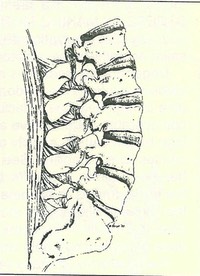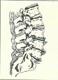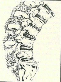 Basically when vertebrae and discs become degenerated they lose height. This height loss causes a laxity of ligaments. Ligaments function asthe primary stabilizers of the joints and they connect bones to bones. Tendons provide support to a much less degree. Tendons primarily function to connect muscles to bones to provide purposeful movement. When the vertebrae and disc lose height this produces an effective laxity of the ligaments (See Illustration #13). Since ligament sare the primary stabilizers of the joints and they are lax when height is lost, instability, lack of endurance, aching and pain result. The bones and disc literally shake around causing friction. The friction causes a further wearing down of discs, cartilage and later even bone surfaces themselves. Wolf's law states that bones respond to stress by making more bone. Therefore, arthritis spurring (spondylosis deformans) results as an attempt by the bone to stabilize the joint