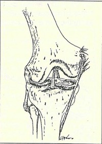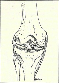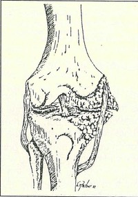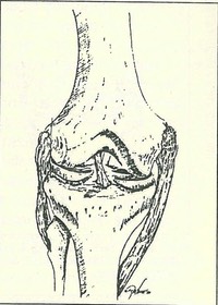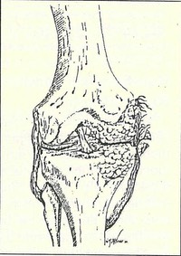 Ligaments hold bones together (See Illustration #1). Tendons are much like ligaments in structure but hold muscles to bones. In injury, with repeated use and with arthritis the ligaments and tendons become torn, loosened or relaxed (See Illustrations 2-4). This causes pain, lack of endurance, loss of strength and eventually arthritis, Arthritis is really the body's attempt at strengthening a joint. Reconstructive therapy uses some sort of irritating substance to cause localized inflammation. Originally sodium morrhuate a derivative of cod liver oil was used but it was messy and caused scarring. Currently we use water soluble agents such as 50% dextrose or Calcium gluconate and procaine. We inject into the lax or torn areas, causing healing cells (fibroblasts) to migrate to the weakened area and to build new tissue which strengthens the weakened area. (See Illustrations 5 & 6)